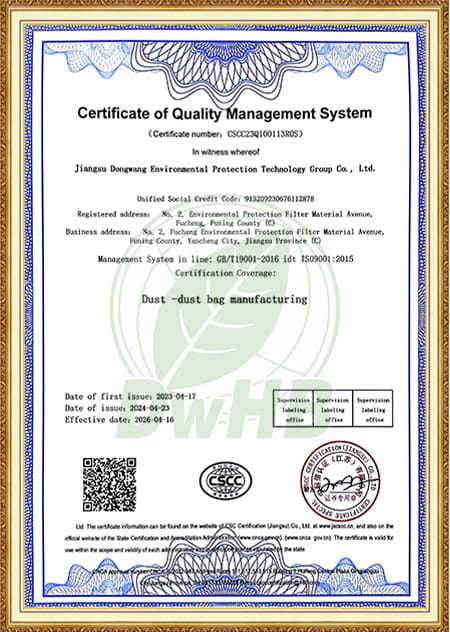 Ang Jiangsu Dongwang Environmental Protection Technology Group Co, Ltd, kasama ang mga pasilidad na produksiyon ng state-of-the-art at may karanasan na koponan, ay nakatuon sa pagbibigay ng de-kalidad na karayom na PTFE na sinuntok na nadama ang mga bag ng filter sa mga basura ng mga halaman sa buong mundo. Ang pangako ng kumpanya sa pagbabago at kahusayan ay nagsisiguro na ang mga produkto nito ay nakakatugon sa pinaka mahigpit na pamantayan sa pagganap.